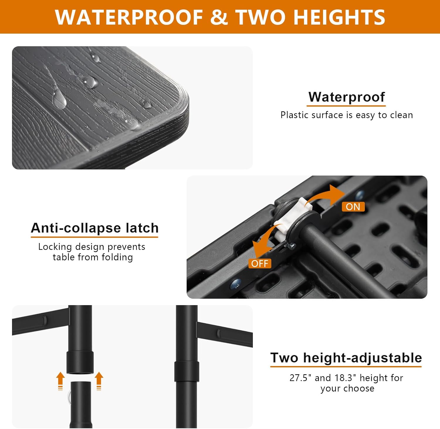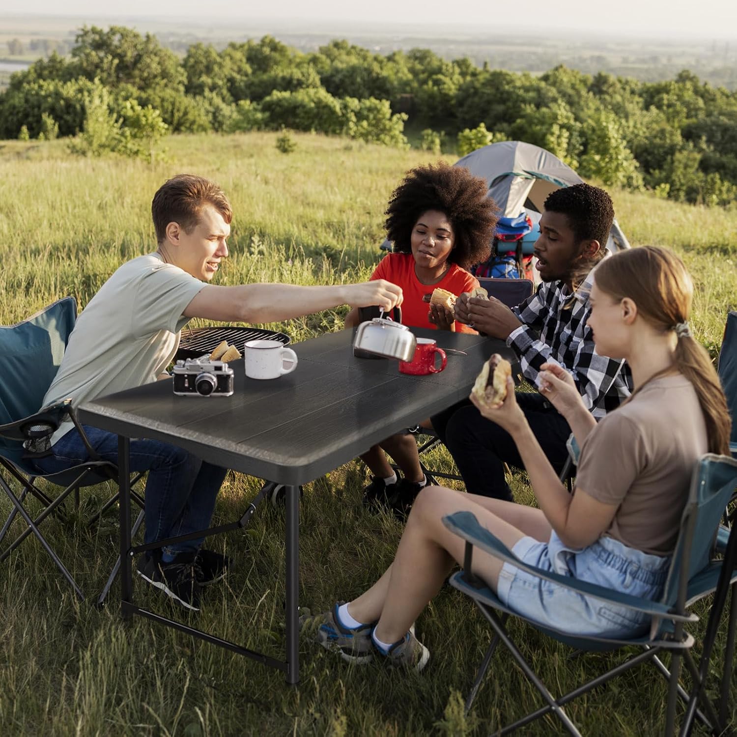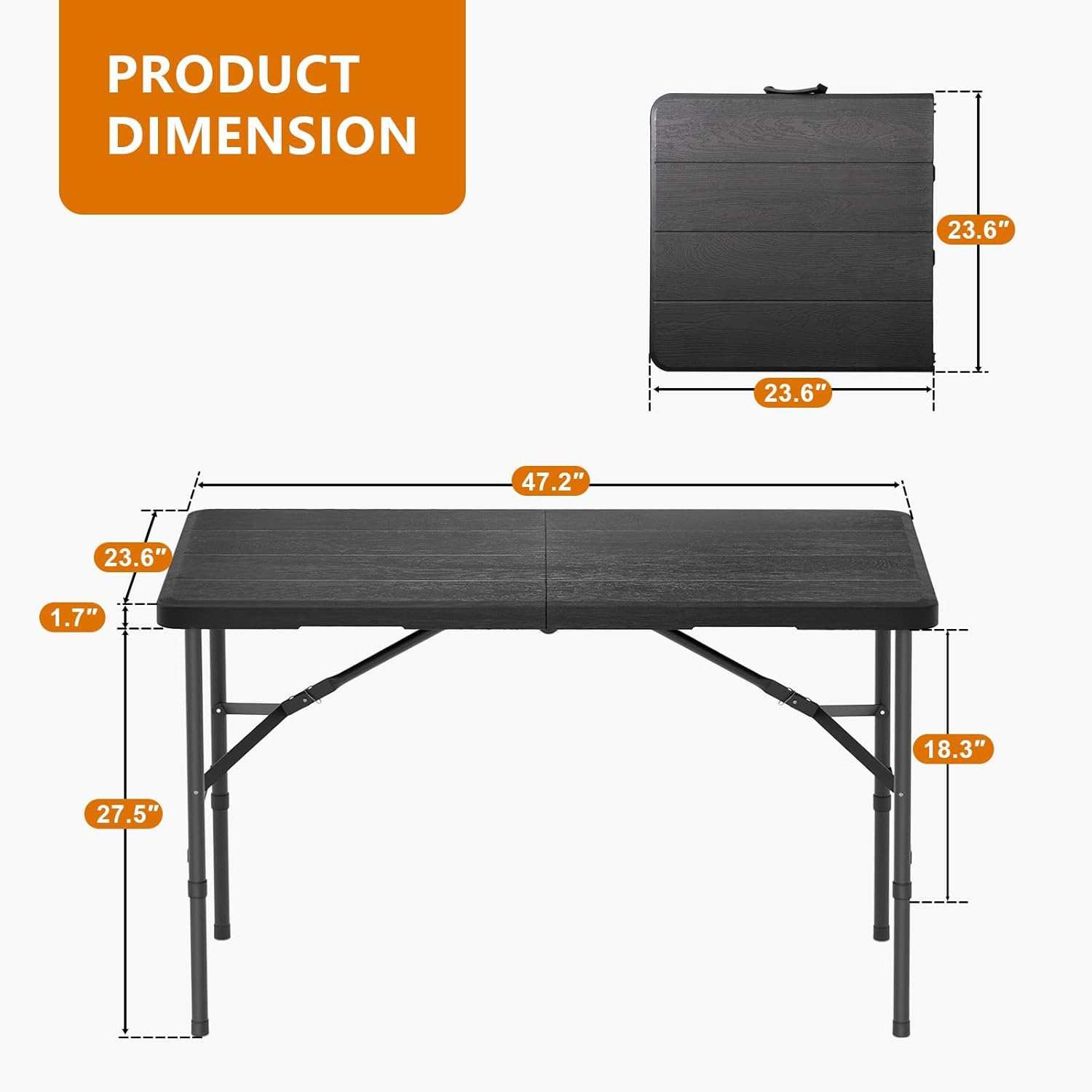 4 Ft Plastic Folding Table,Heavy Duty Portable Table for Indoor & Outdoor,Wood Grain Desktop & 350lbs Weight Capacity,Premium Solutions for Camping,Picnic,BBQ and Party