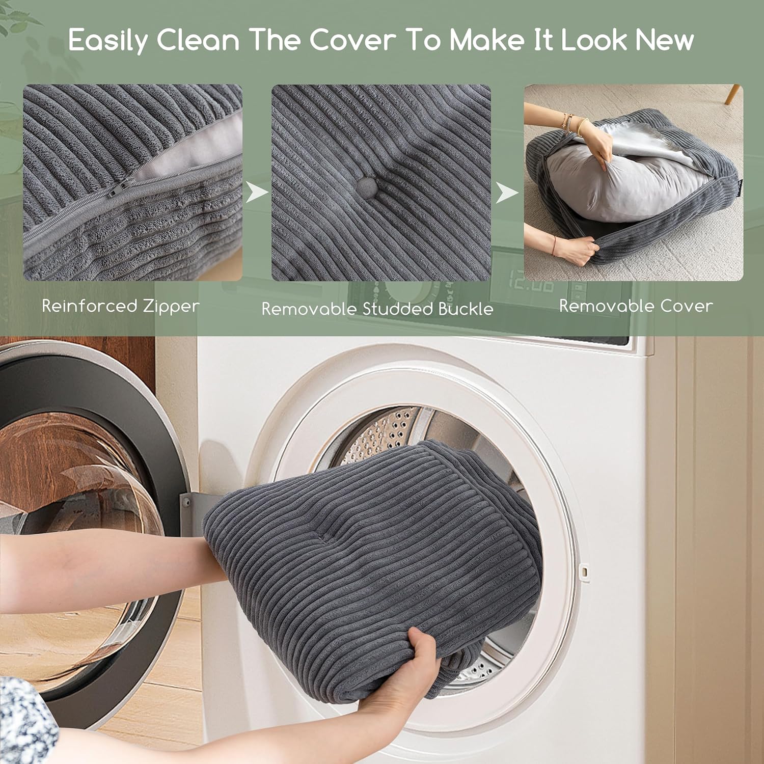 6" Washable Floor Pillow Cushion for Adults, Meditation Cushion Pillow, Large Square Floor Sitting, Removable Tufted Corduroy Cover, for Tatami Living Room or Yoga, 22x22 Inch, 2Pack, Machine Washable