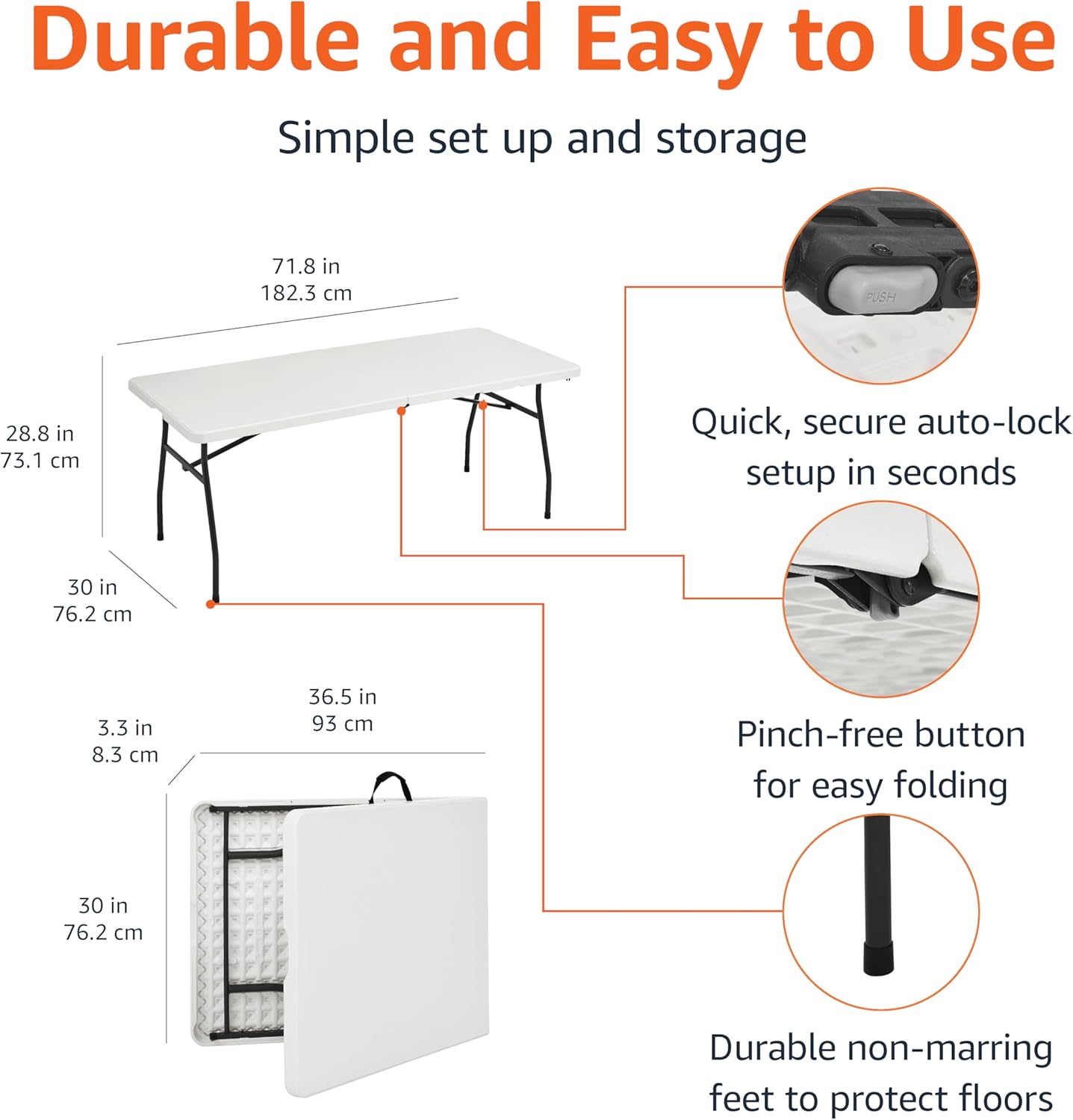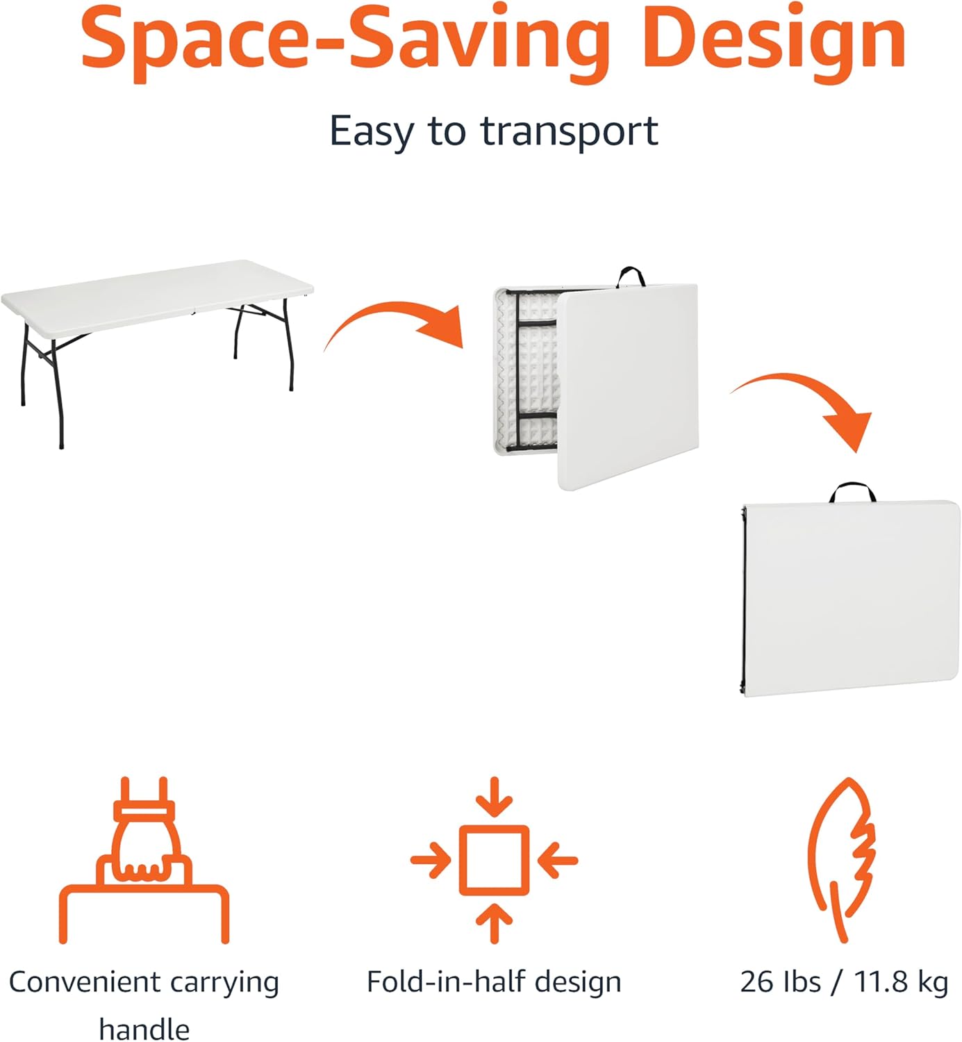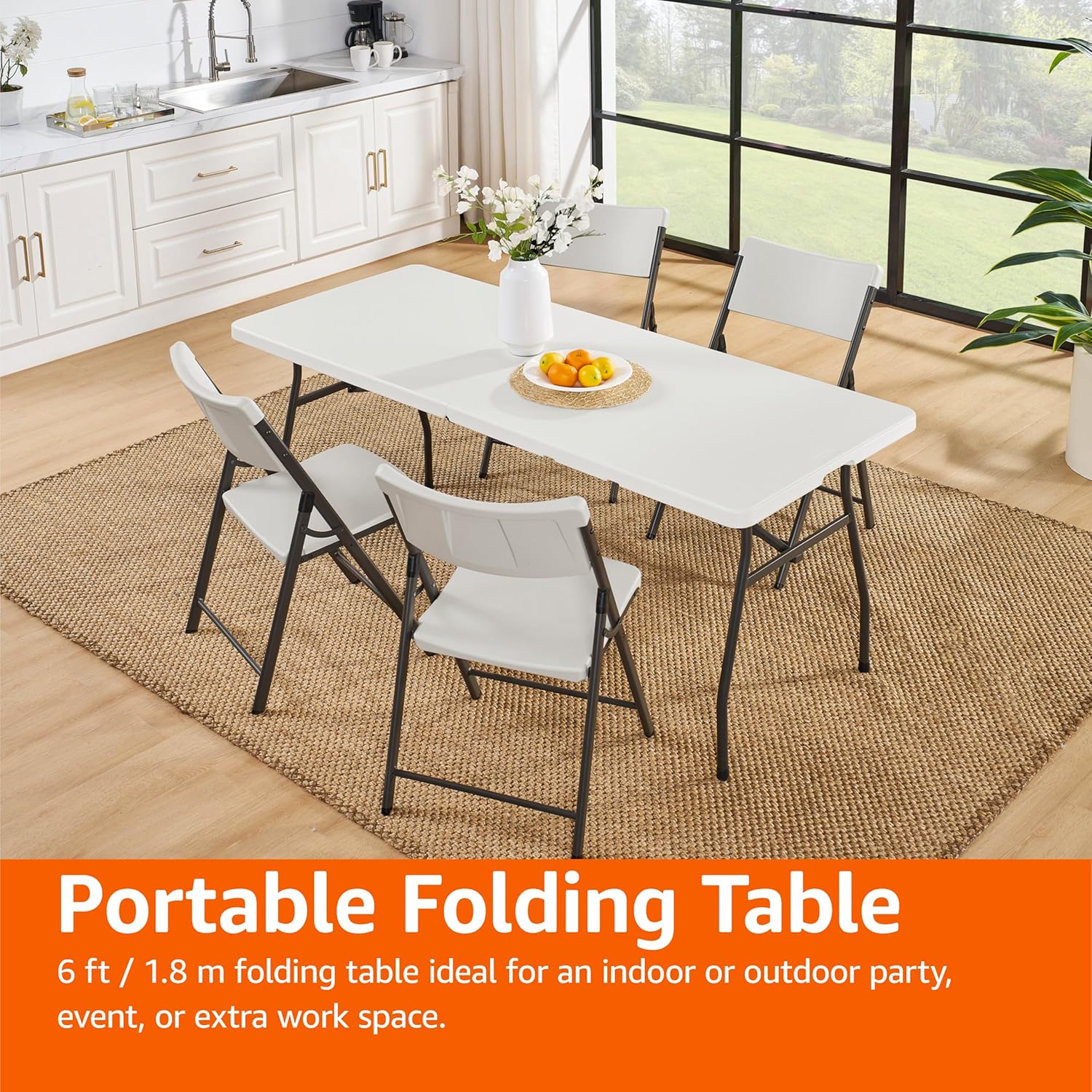 Amazon Basics Heavy Duty Portable Folding Table 6 ft with Carrying Handle, Indoor & Outdoor, White