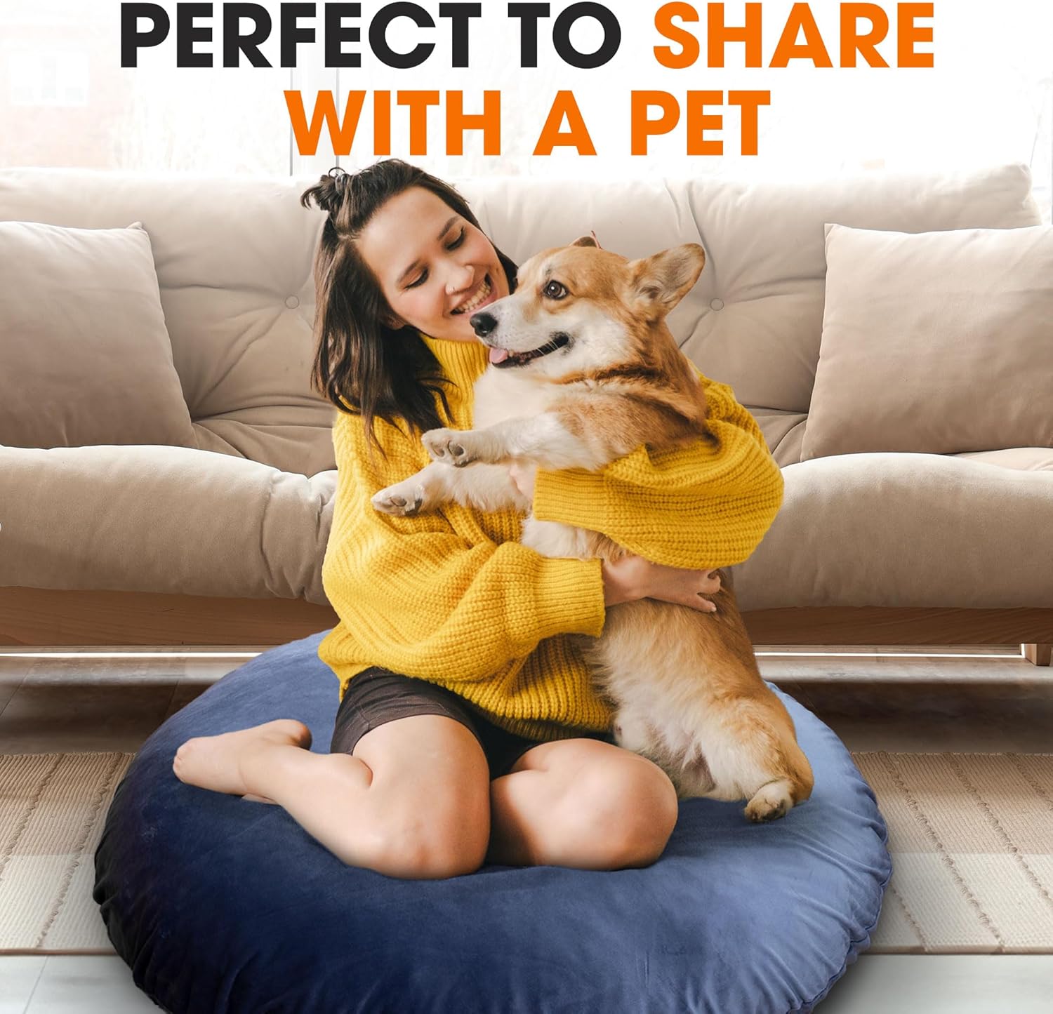 Cheer Collection Extra Large Floor Pillow, 32" Round Meditation Cushion, Oversized Yoga Pillow & Floor Cushions for Adults, Floor Pillows for Sitting, Meditation, and Seat Cushion - Navy Blue