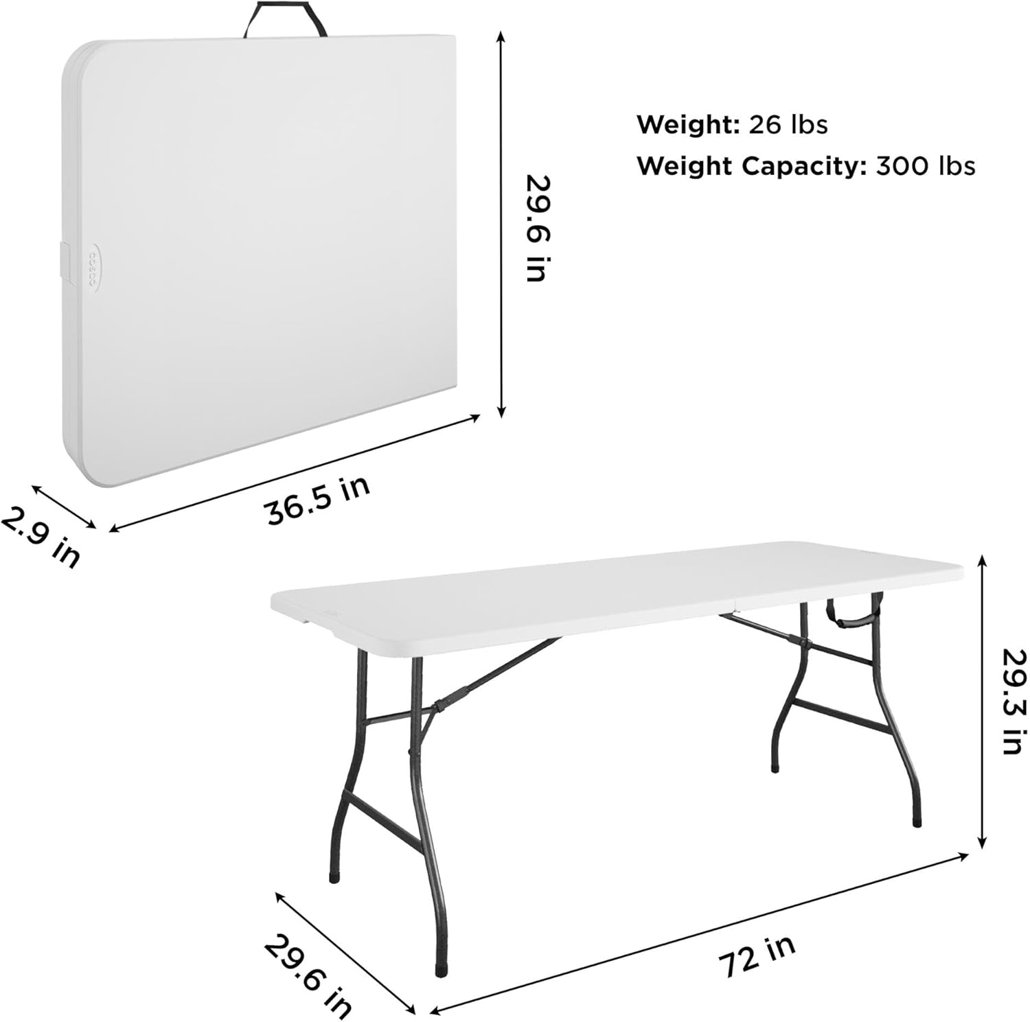 Cosco 6ft Fold-in-Half Blow Molded Folding Table, Indoor/Outdoor, Comfort Handle, Lightweight Plastic Construction - White